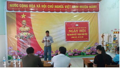Phát biểu tại ngày hội, đồng chí Siu Jông, phó Bí thư Đảng uỷ xã đã biểu dương, ghi nhận và chúc mừng những thành tích xuất sắc của cán bộ, đảng viên và Nhân dân làng Vel đạt được trong thời gian qua. Đồng thời đề nghị cấp ủy, Ban công tác Mặt trận và toàn thể Nhân dân không ngừng củng cố và phát huy khối đại đoàn kết toàn dân tộc, thực hiện tốt quy chế dân chủ ở cơ sở; phát huy vai trò tự quản, tinh thần trách nhiệm xây dựng khu dân cư đoàn kết, nghĩa tình, văn minh. Đẩy mạnh các phong trào thi đua yêu nước, các cuộc vận động; tiếp tục chăm lo đời sống vật chất, tinh thần của Nhân dân; tăng cường ứng dụng công nghệ thông tin, chuyển đổi số trong công tác quản lý, tuyên truyền, vận động và phản ánh ý kiến Nhân dân; phát huy dân chủ, củng cố niềm tin, tạo sự đồng thuận trong cộng đồng.